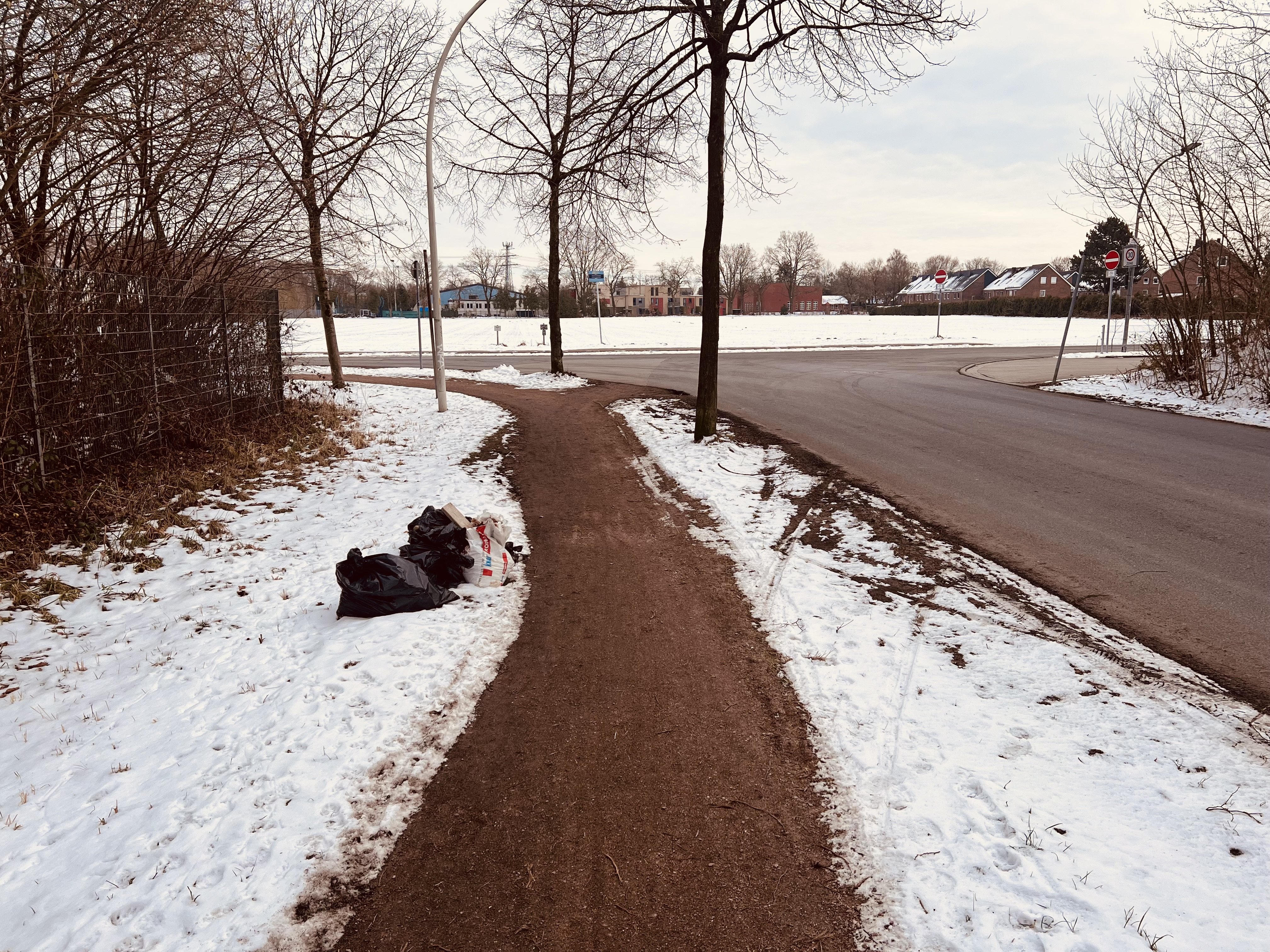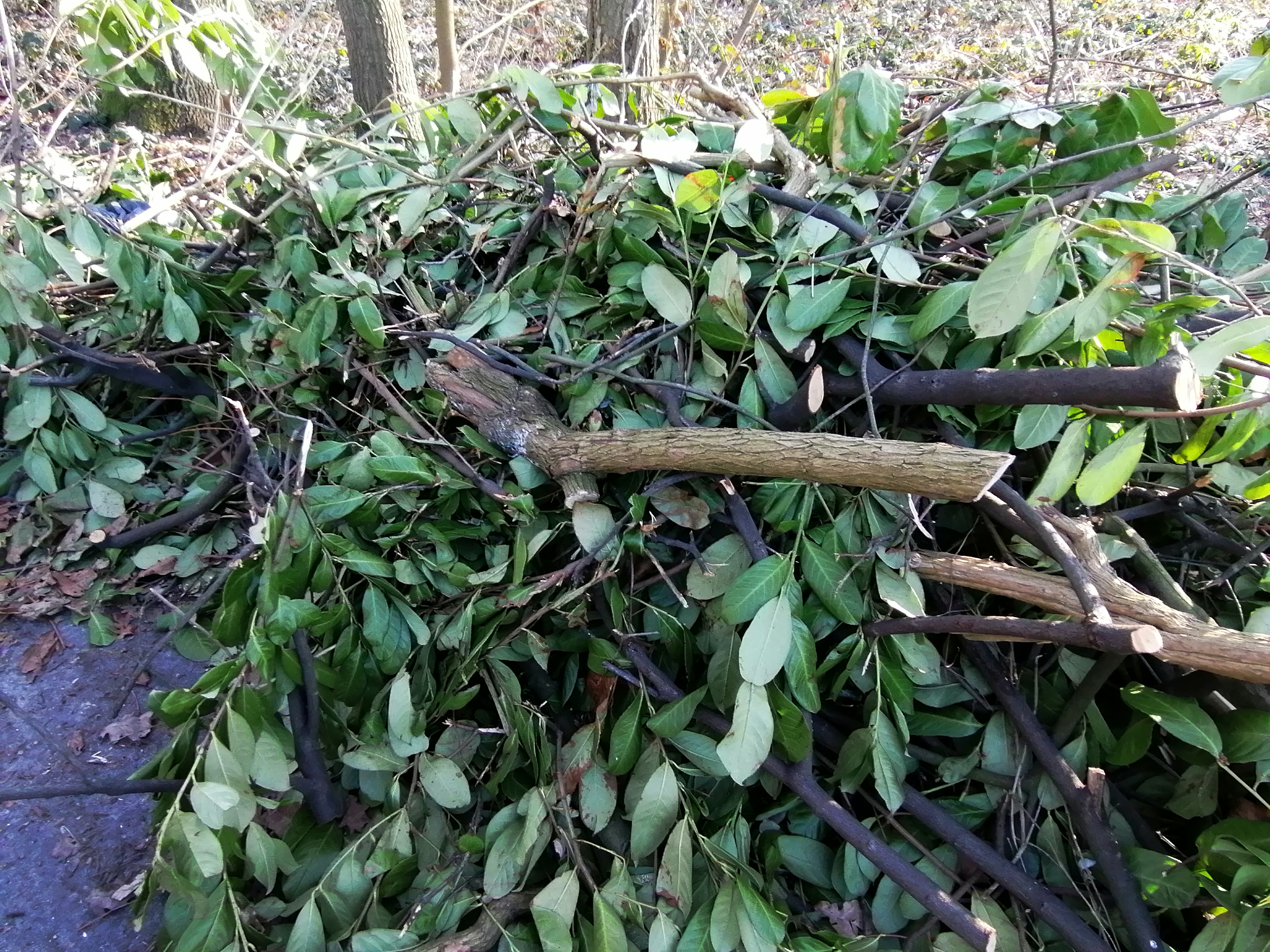 Im Seegrabenweg ist über das Wochenende illegal Abfall entsorgt worden: Spanplatten, Kirschlorbeer und blaue Tüten