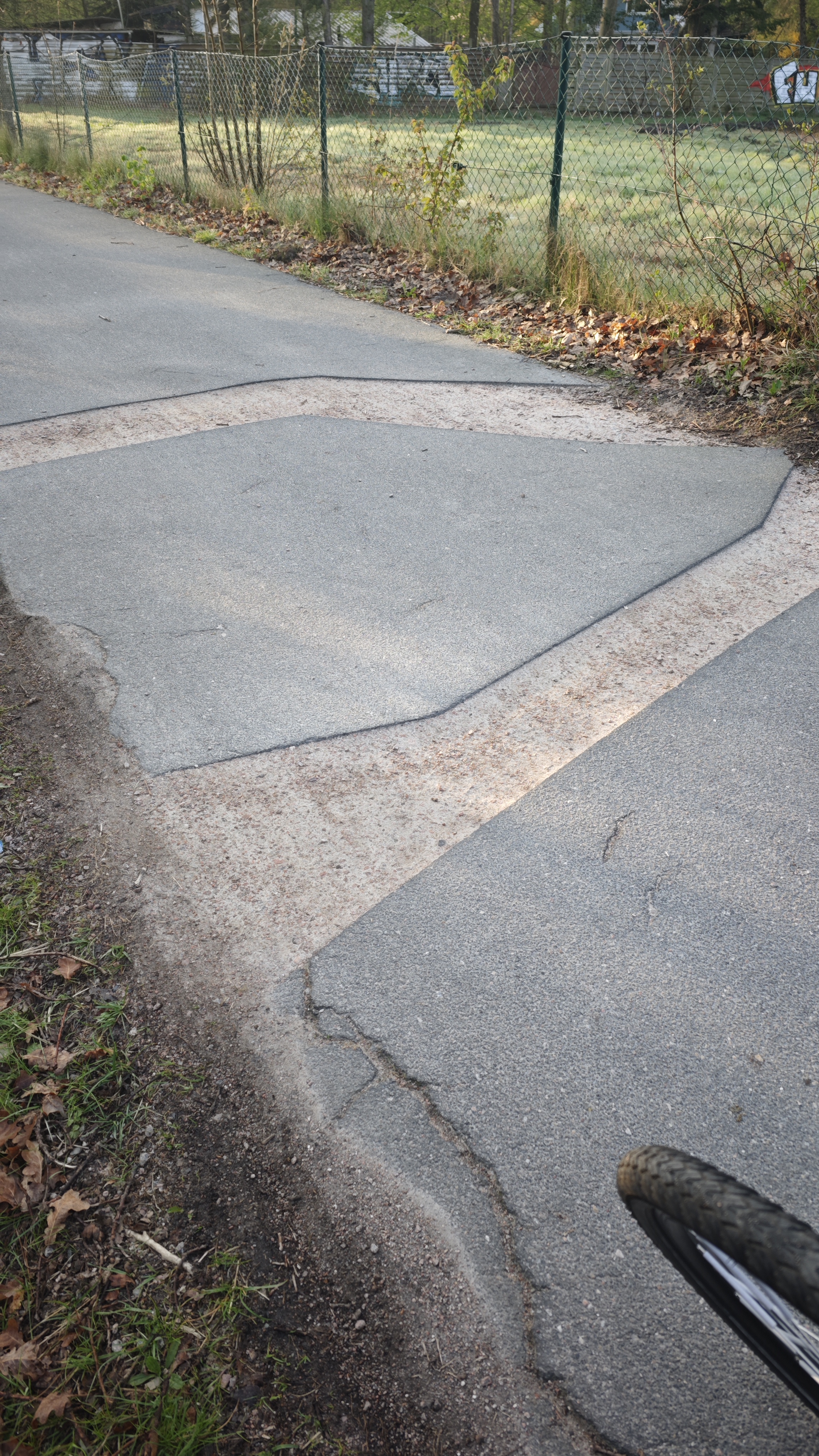 Da die Wurzeln über die gesamte Fahrbahnbreite verlaufen ist ein Ausweichen unmöglich und meine Fahrradkette springt regelmäßig vom Ritzel.